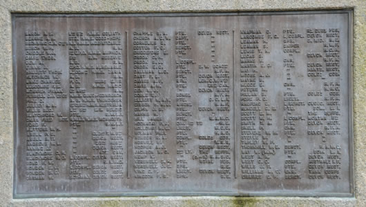 List of names on Dawlish War Memorial